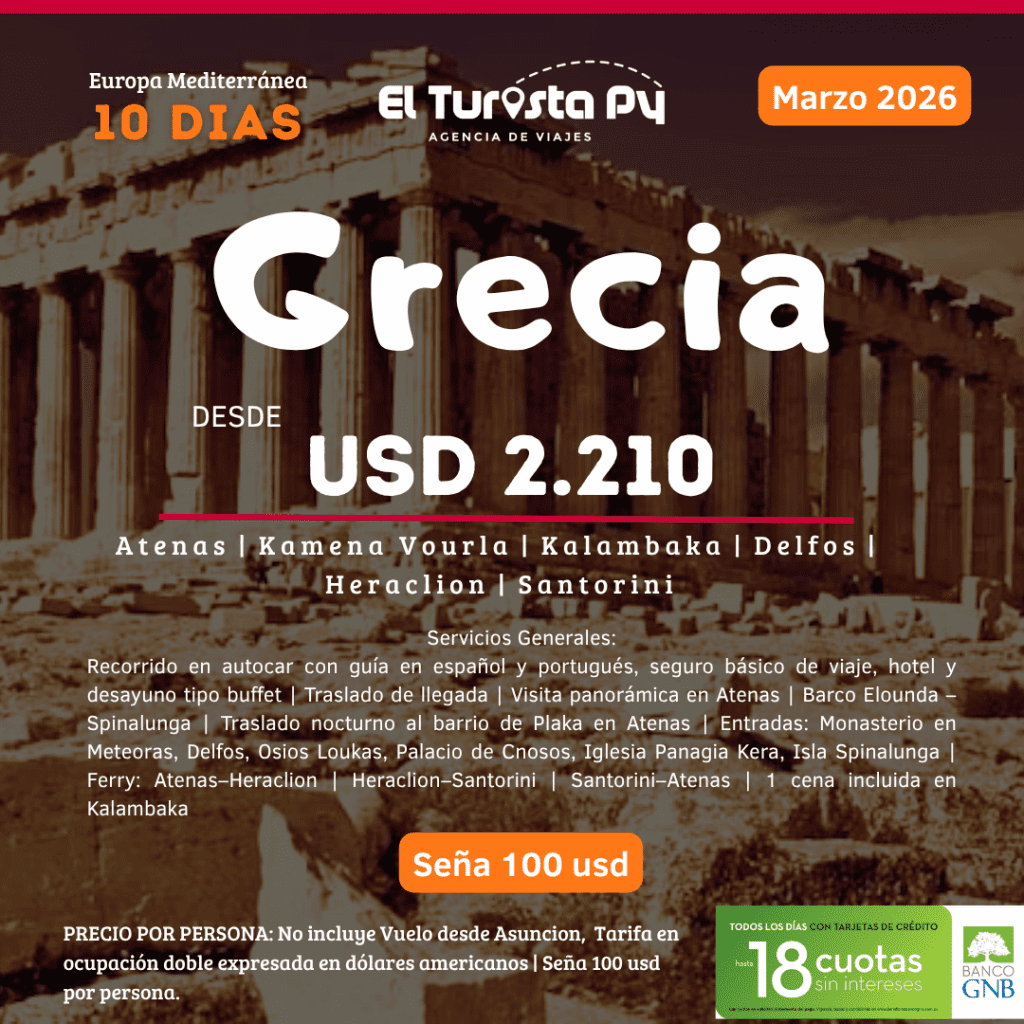 Viajá a Grecia en marzo 2026 con El Turista PY.